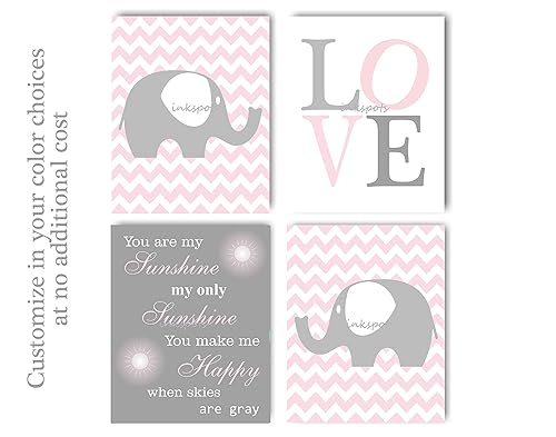 Pink Gray Nursery Girl Elephant Nursery Wall Art Baby Girl