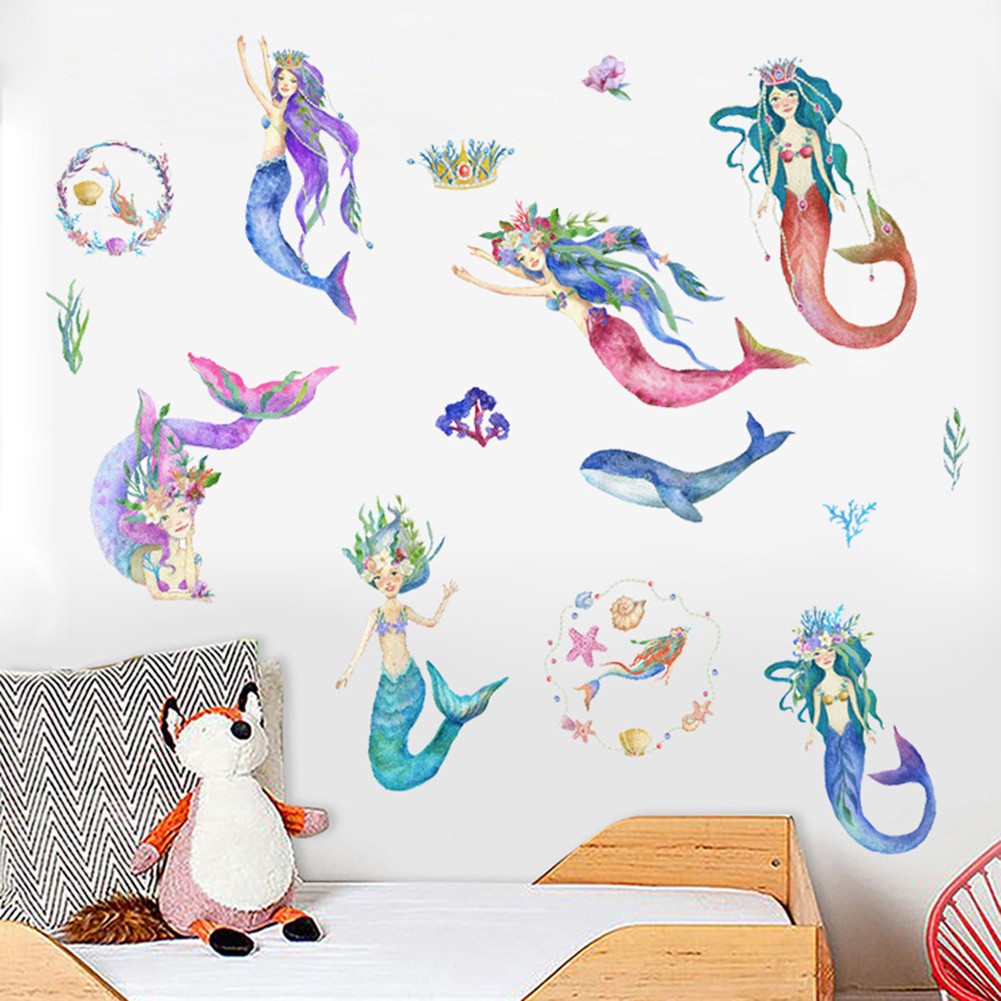 Cartoon Mermaid Princess Wall Stickers Wallpaper Diy Vinyl Home