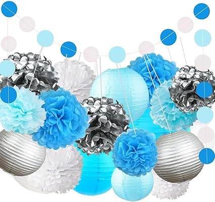 Boy Baby Shower Decor Set 21pcs Silver White Baby Blue Round Etsy
