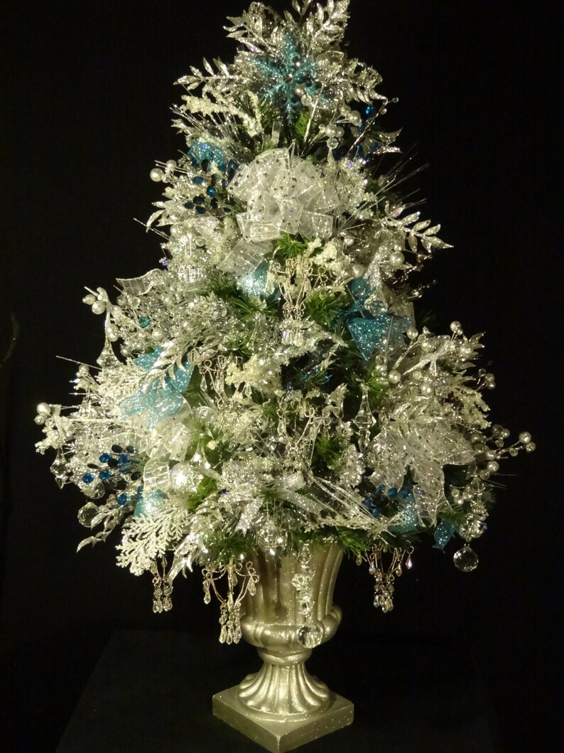 Silver And Blue Elegant Crystal Lighted Christmas Treeluxury Etsy