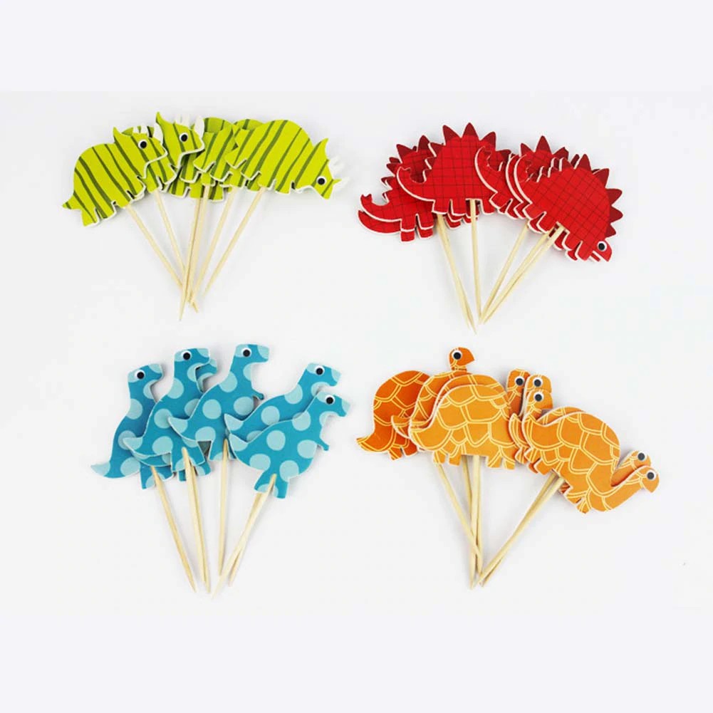 24pcs Dinosaur Party Supplies Cartoon Cupcake Toppers Pick Kid Boy