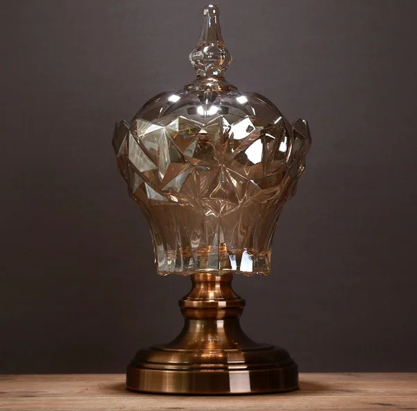 Classical European Glass Pedestal Organizer Jar Decorative Metal