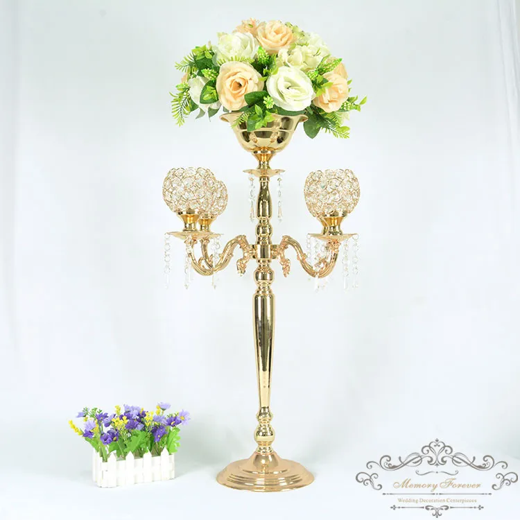 10pcs Crystal Candelabra With Flower Bowl For Wedding Decoration