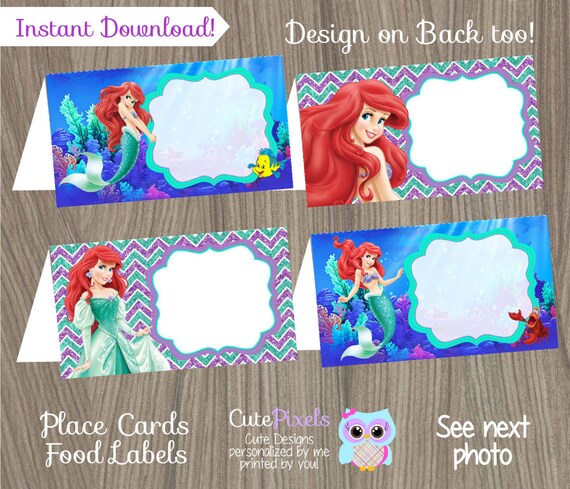 Little Mermaid Place Cards Ariel Place Cards Disney Little Etsy