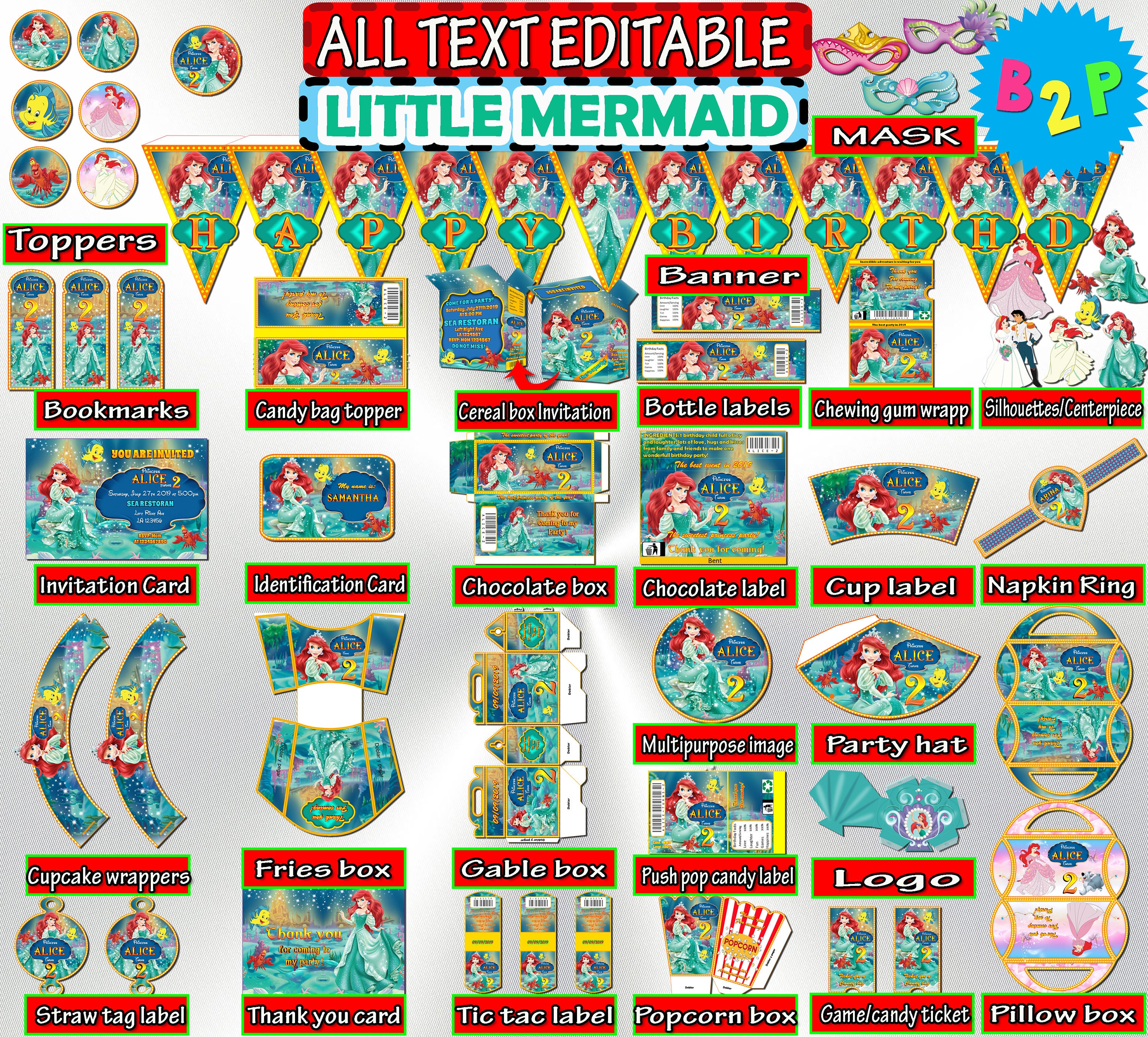 Little Mermaid Birthday Bundle Editable Birthday Party Etsy