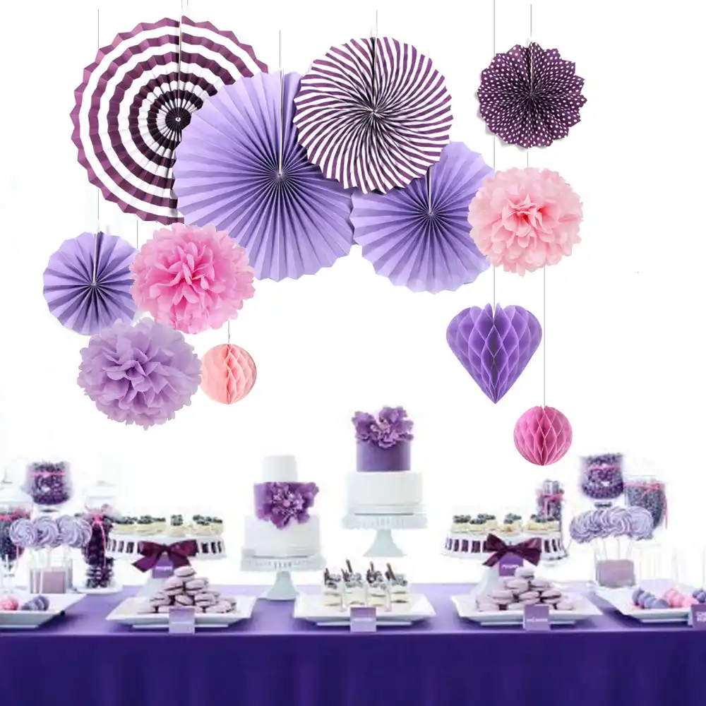 12pcs Elegant Purple Pink Valentine Paper Decoration Set Paper
