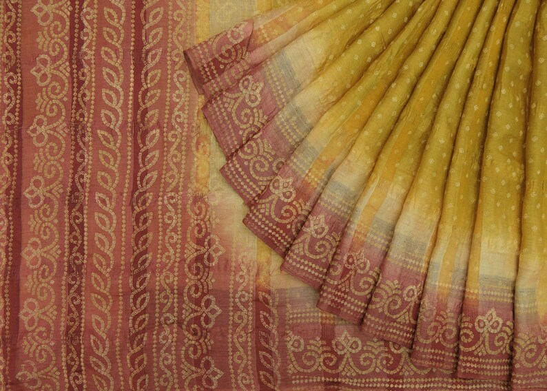 Indian Vintage Home Decor Bandhani Printed Saree Pure Khadi Etsy