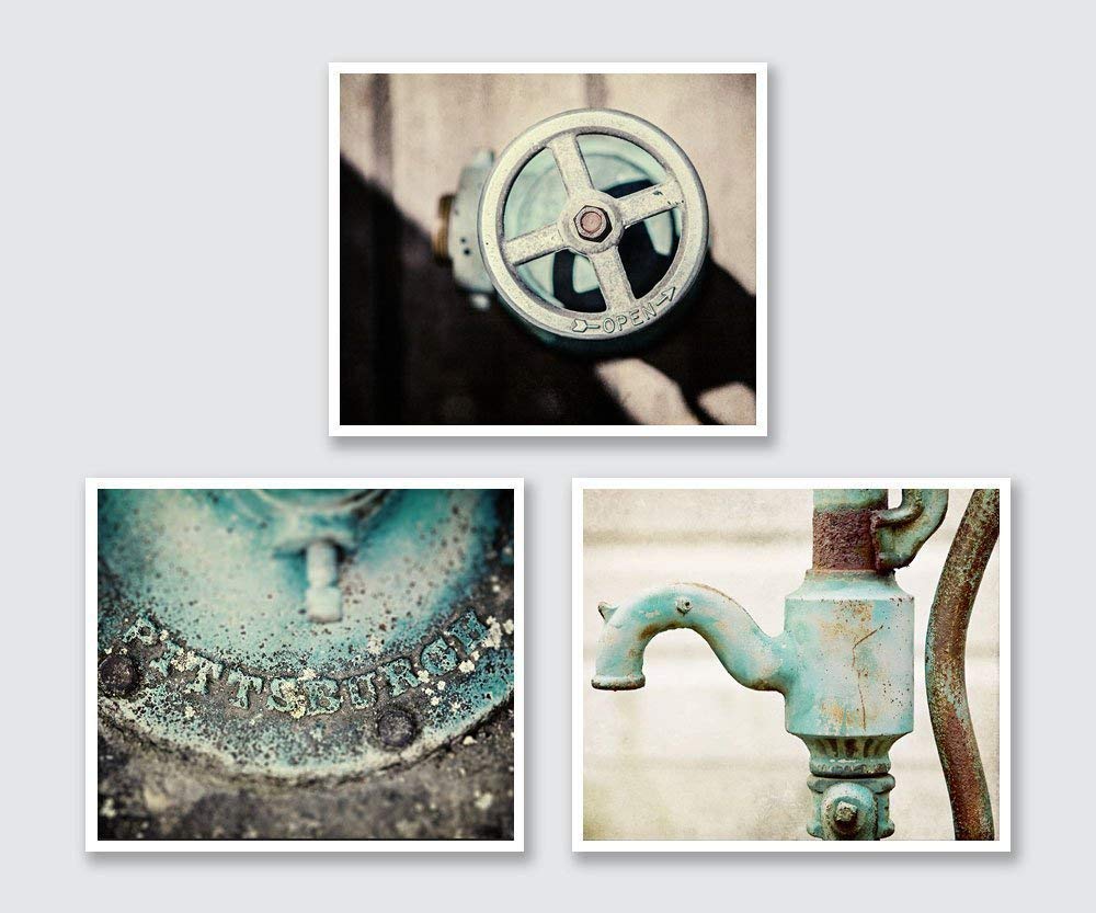 Amazon Com Teal Industrial Style Bathroom Decor Set Of 3 Prints