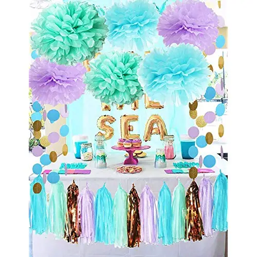 Fengrise Little Mermaid Party Supplies Theme Mermaid Decor Mermaid