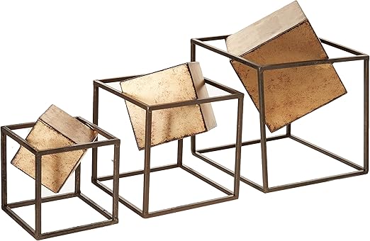 Amazon Com Madison Park Quad Cube Home Decor 3 Piece Set Metal