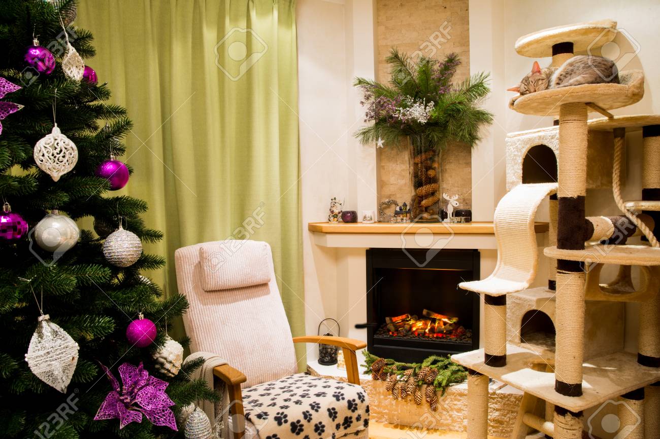 A Cozy Living Room Decorated To Celebrate Christmas And New Year