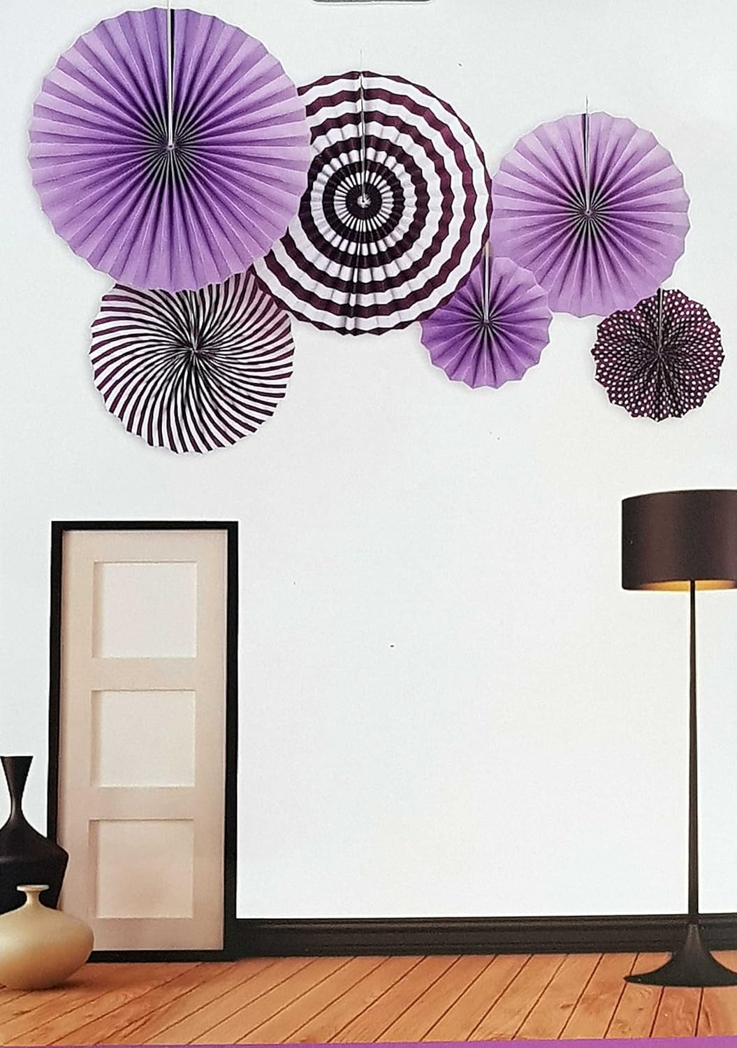 My Party Suppliers 1 Set 6pcs Purple Paper Decoration Fan