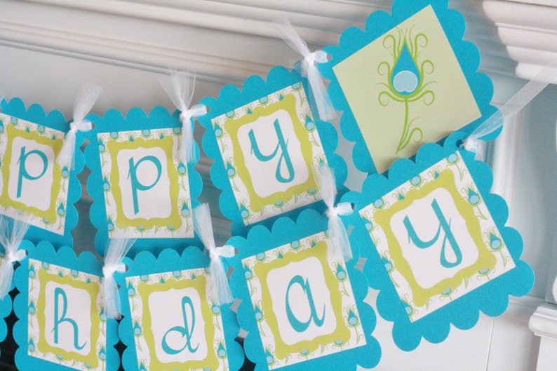 Blue Green Peacock Feather Happy 30 40 50 60 70th Birthday Etsy