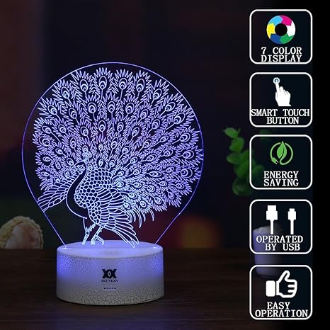 Amazon Com Peacock 3d Visual Illusion Night Light Xmas Chirstmas