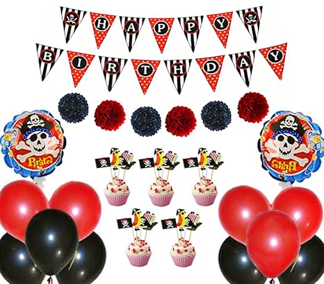 20pcs Black Red Pirate Theme Birthday Party Decoration Set Happy