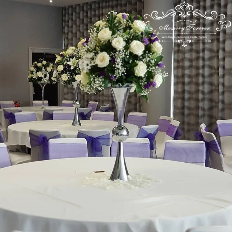 Metal Stand Gold Silver Flowers Vase Artificial Silk Rose Flower