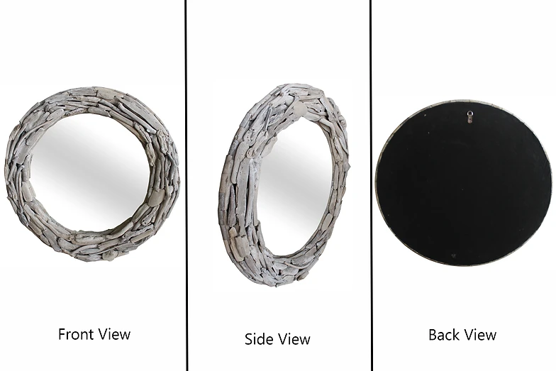 Home Garden 32 Round White Wood Driftwood Wall Mirror French