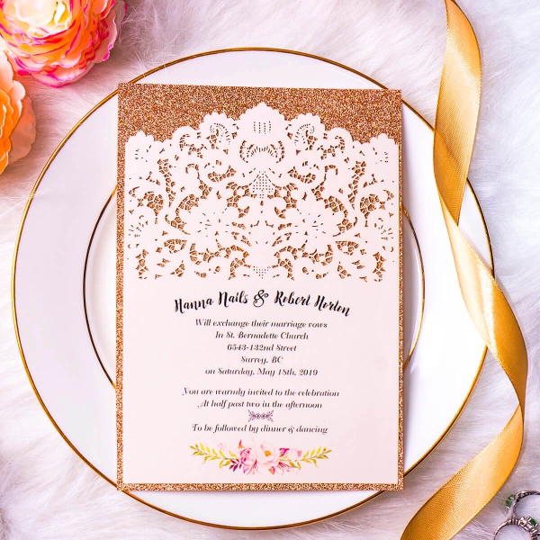 Cheap Rose Gold Laser Cut Wedding Invites Simple And Elegant