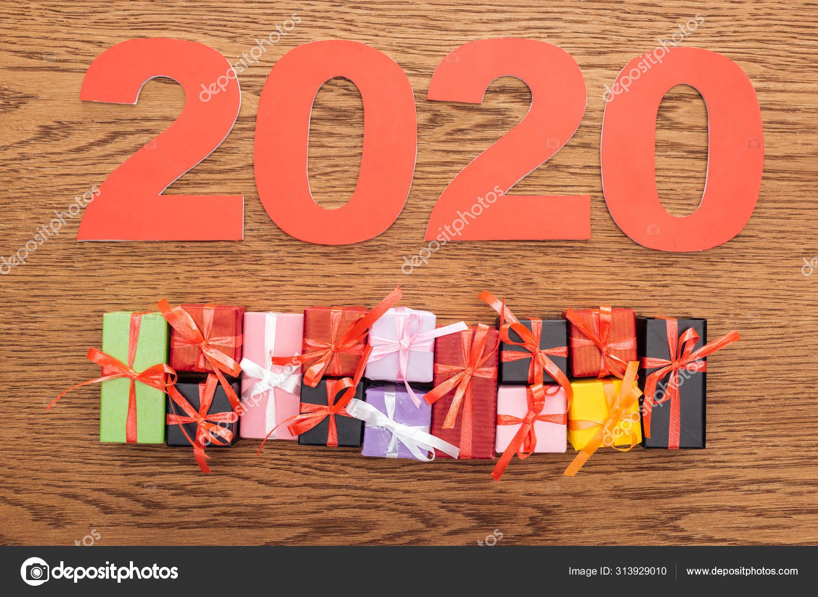 Top View Paper 2020 Numbers Small Decorative Gift Boxes Wooden