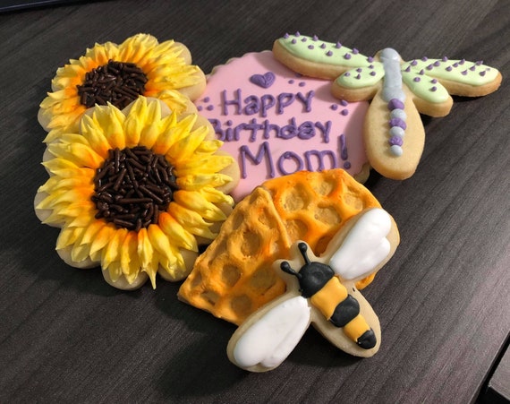 Springtime Birthday Cookies Bees Sunflower Decorated Sugar Etsy