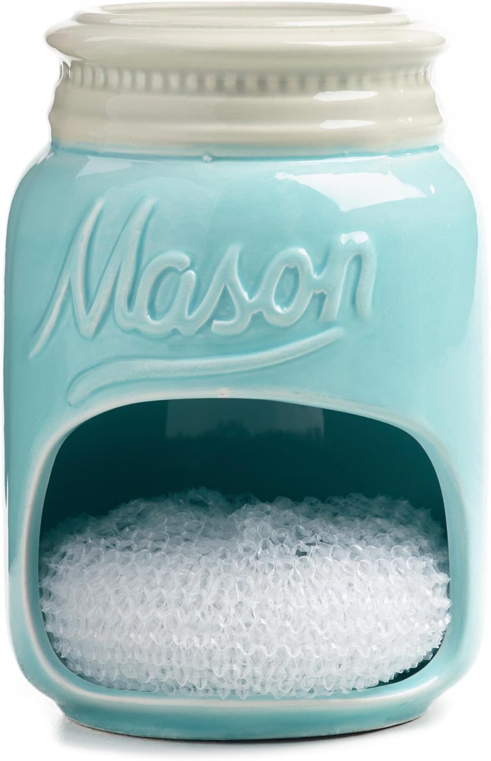 Vintage Gift For Friends Blue Ceramic Mason Jar Kitchen Sponge