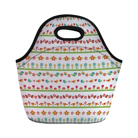Amazon Com Neoprene Lunch Bag Kids Lovely Border Designs With