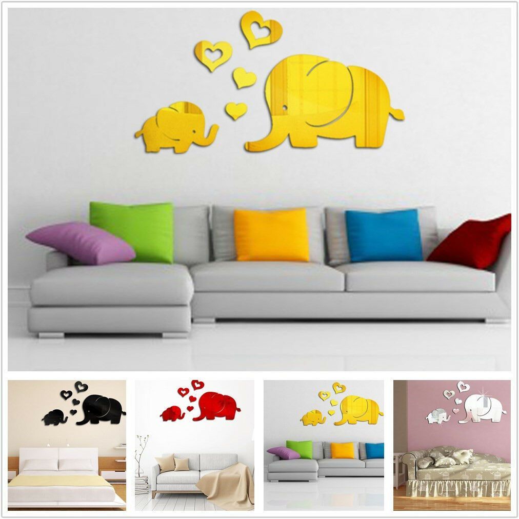 3d Elephant Mirror Wall Sticker Love Acrylic Decor Mirror Stickers