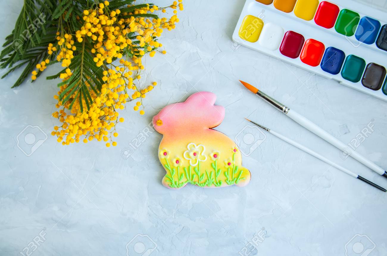 Decorated Easter Bunny Cookies Mimosa Paints And Brushes On A