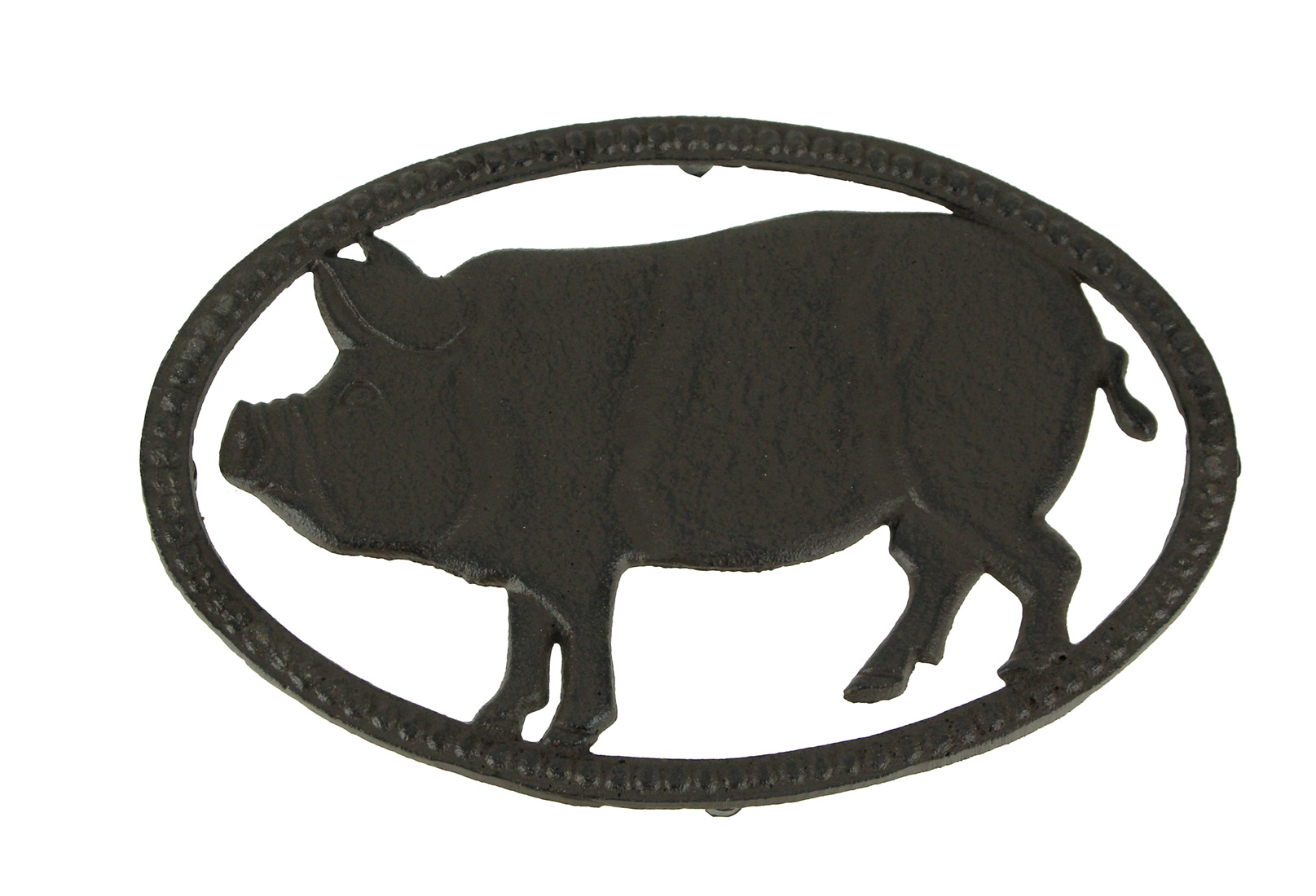Rustic Brown Cast Iron Pig Kitchen Trivet Or Wall Art Hanging