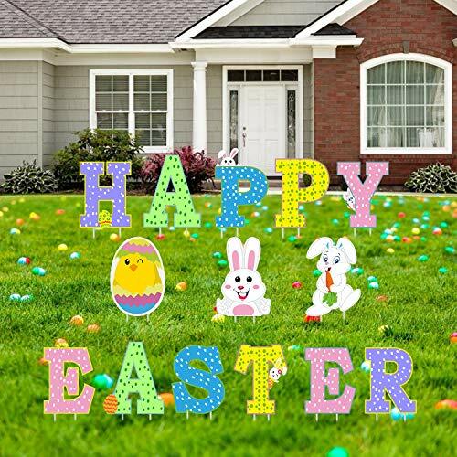 Huray Rayho Easter Street Yard Sign Cutouts With Stakes Bunny Eggs