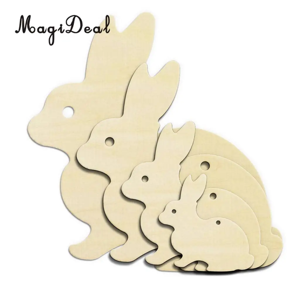 Magideal 10 Pieces Rustic Wooden Easter Bunny Wooden Cut Craft