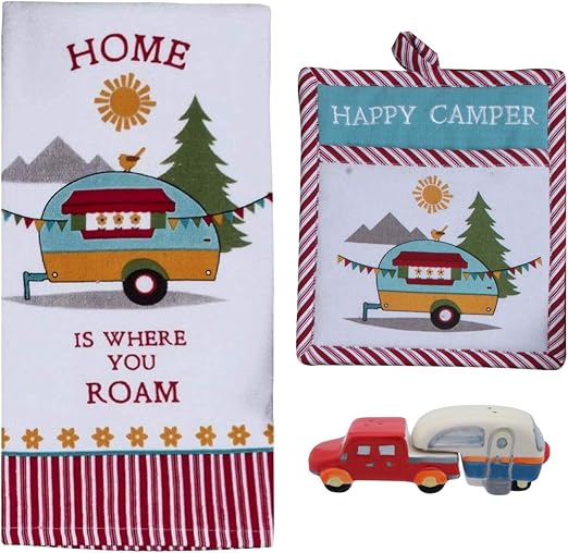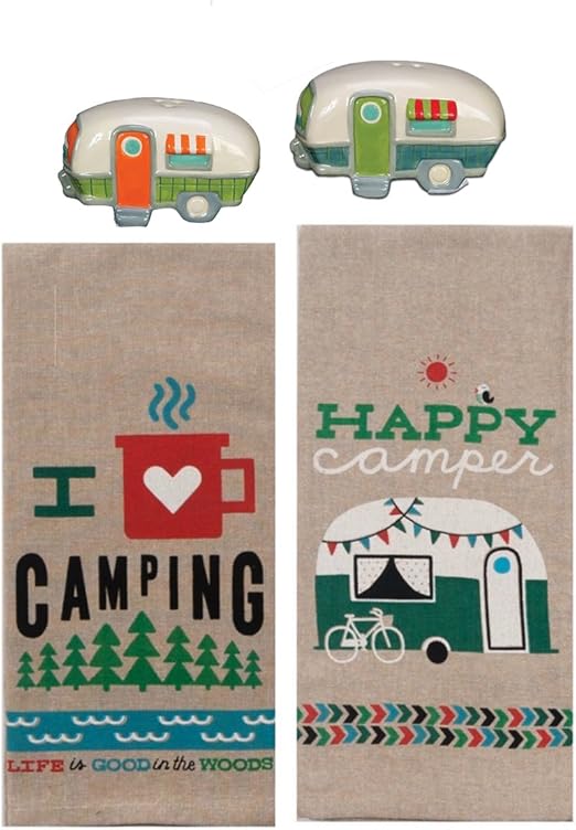 Amazon Com Happy Camper Decor Dish Towels And Salt Pepper Set