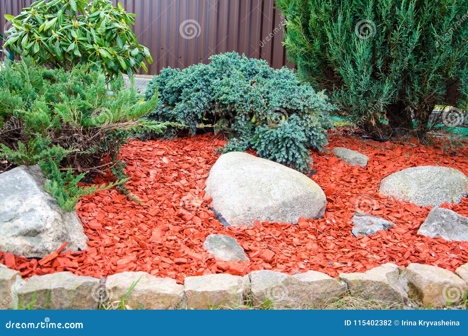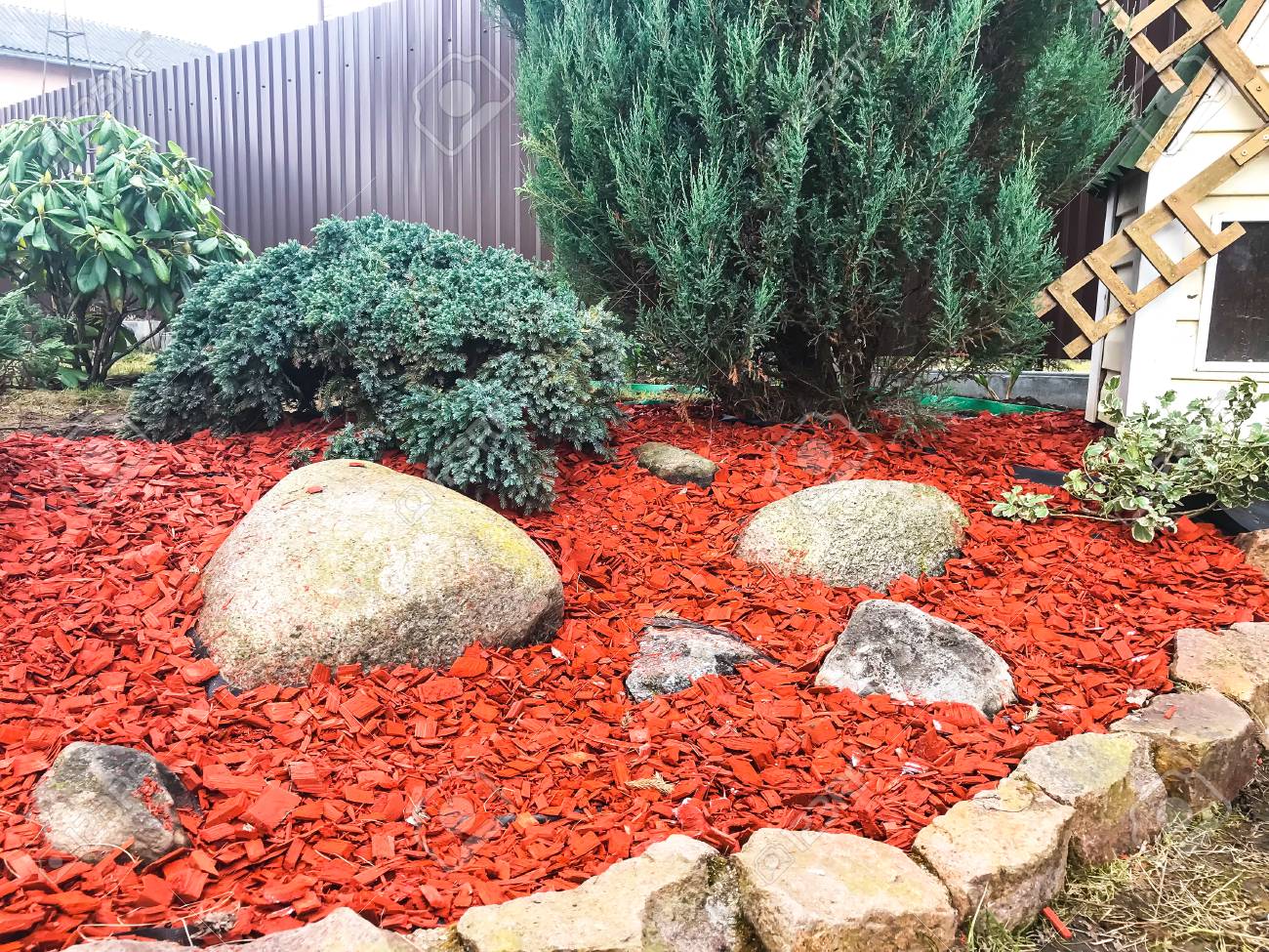 Decorative Red Chips Bark Of Trees Stock Photo Picture And