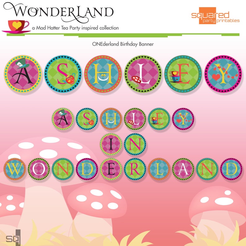 Mad Hatter Tea Party Inspired Printable Birthday Banner Diy Etsy