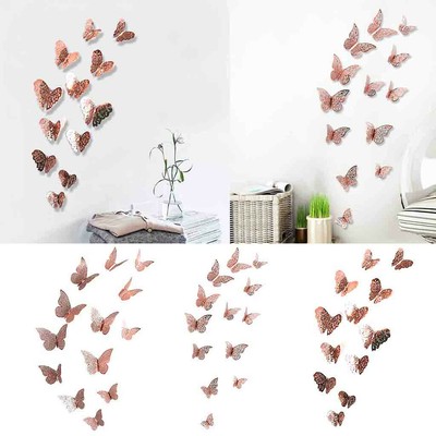 Rose Gold Butterfly Decorations 3d Wall Decals Art Sticker Diy