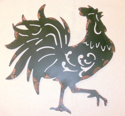 New Distressed Black Sheet Metal Rooster Wall Hanging Farmhouse