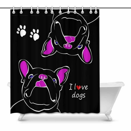 French Bulldog Dog Shower Curtain Bathroom Decor Fabric 12hooks