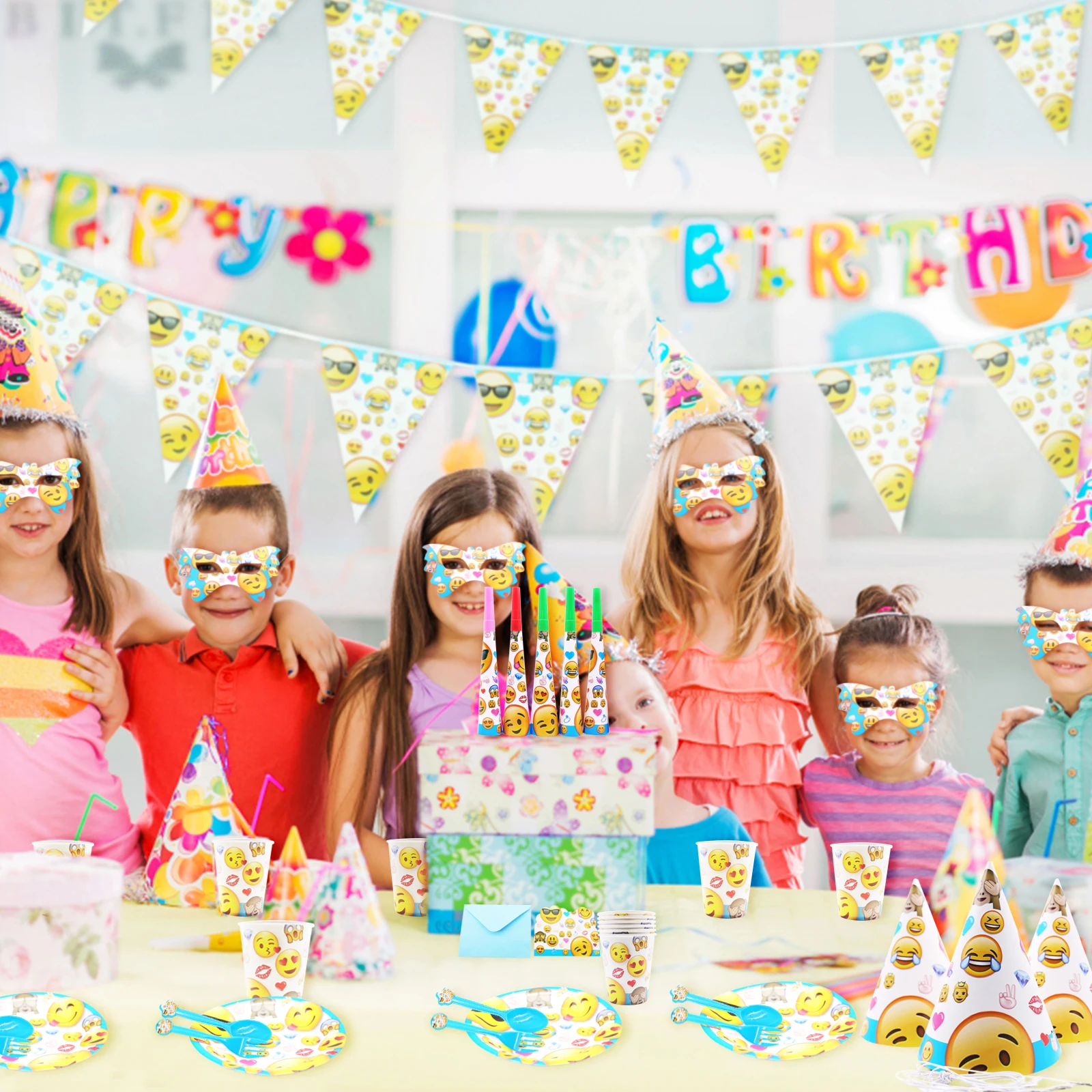 Emoji Expressio Kids Birthday Party Decoration Cup Plate Banner