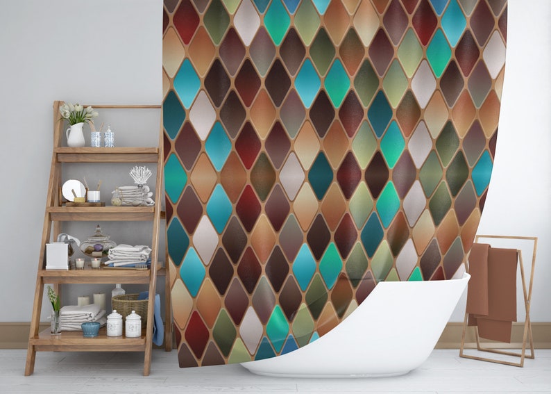 Mediterranean Style Geometric Pattern Mosaic Tile Shower Etsy
