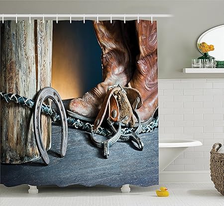 Western Decor Shower Curtain Dated Metal Horseshoe Whip And Spurs