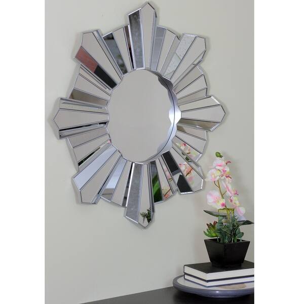 Contemporary Nickel Finished Sunburst Mirror Wall Decor Silver