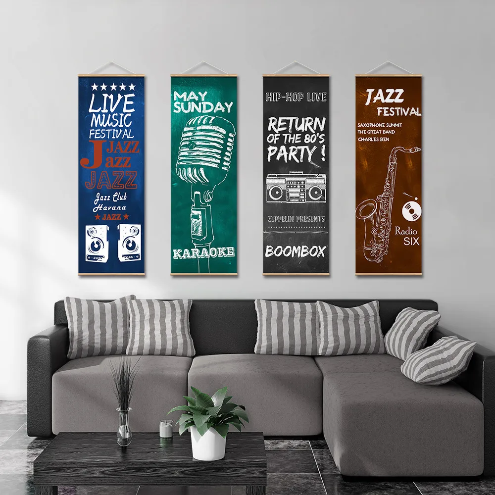 Vintage Music Prop Canvas Scroll Painting Home Decor Wall Art
