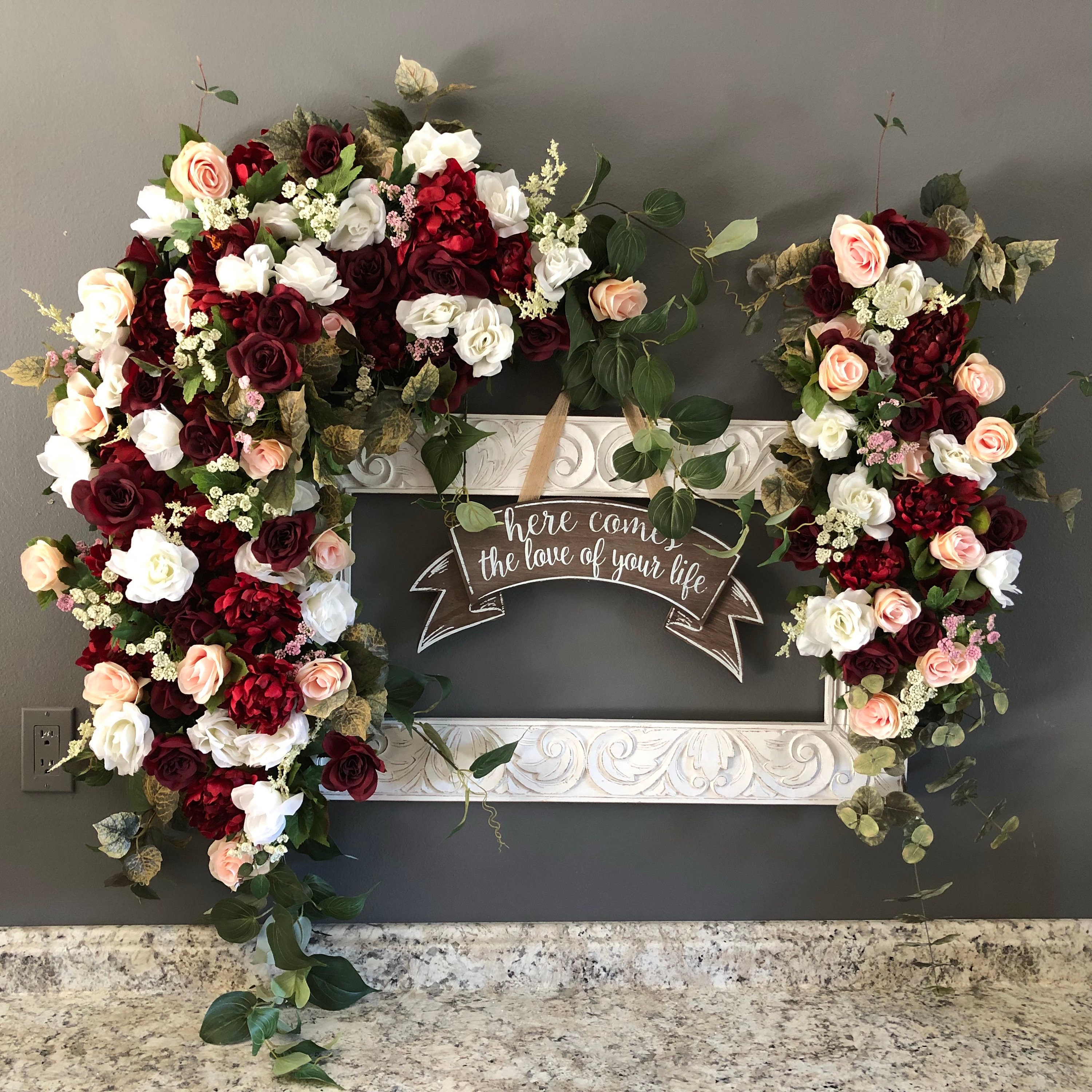 Burgundy Blush Wedding Ceremony Arch Wedding Arch Flowers Etsy