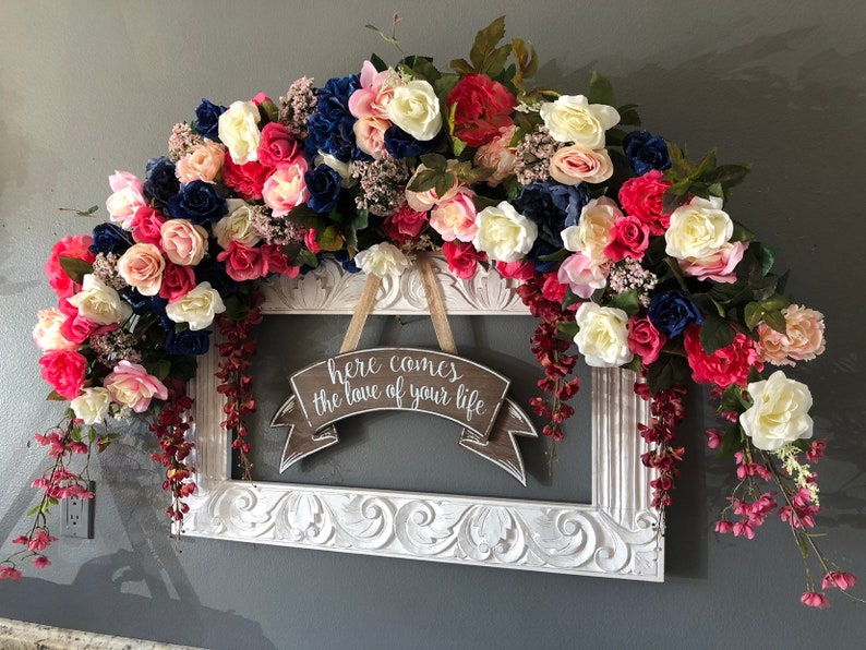 Sale Wedding Arch Flowers Fuchsia Navy Wedding Archway Etsy