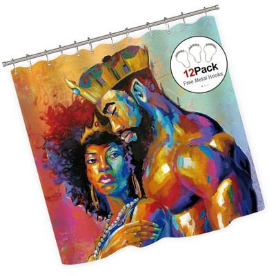 Riyidecor King African American Lovers Couple Shower Curtain Metal