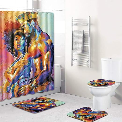 Romantic Afro Black King With Queen Shower Curtain Bathroom Decor