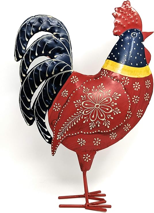 Amazon Com Farmhouse World Red Bandana Metal Rooster Decor