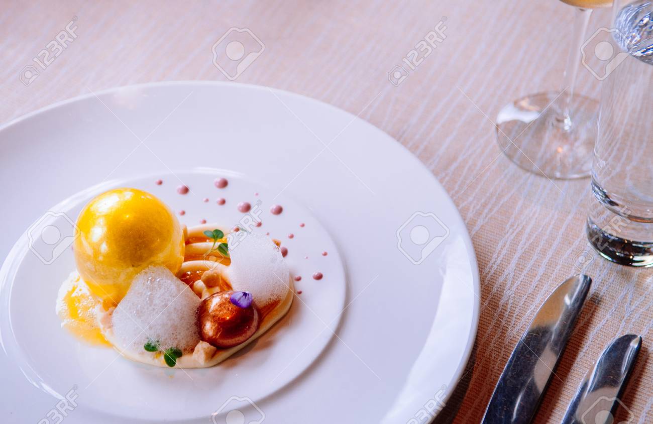 Delicious Meal Of Spanish Fusion Cuisine Beautiful Decorated Dish