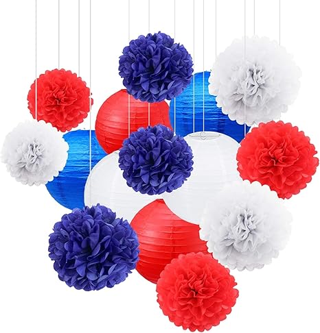 12 Pcs Nautical Party Decor Royal Blue Red White Tissue Paper Pom