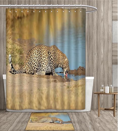 Sunsunshine Safari Shower Curtain Waterproof Leopard Panther